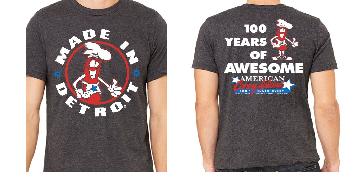 Wear the pride of Detroit's famous landmark. This is a special edition T-Shirt celebrating 100 years of coney excellence.